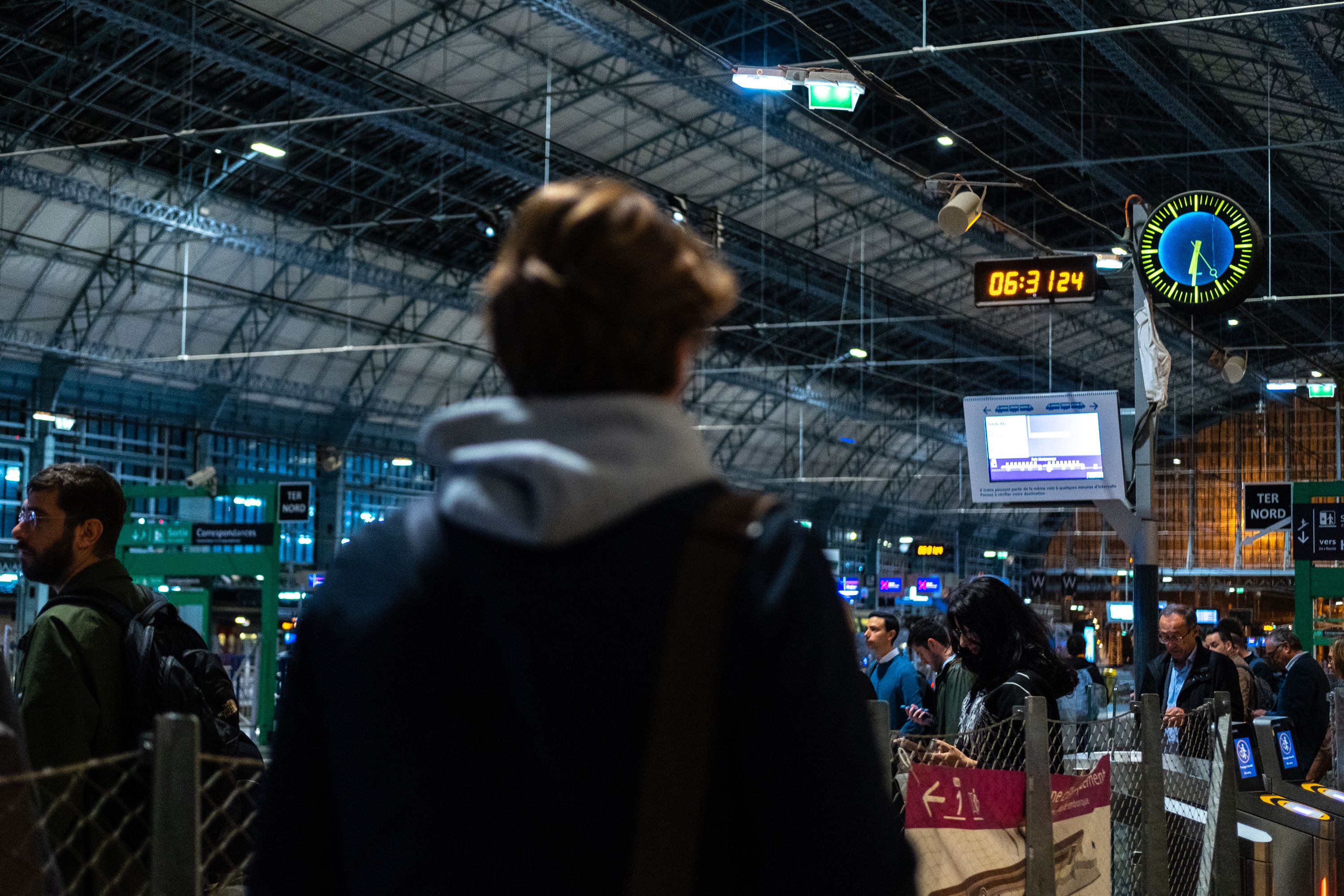 La nuit avance, la gare est silencieuse. Les panneaux d’affichage indiquent déjà les trains du lendemain matin. « Les gens sont moins stressés le soir », constate Didier, accompagnant des personnes en situation de handicap (PSH) et personnes à mobilité réduite (PMR). Contrairement à la clientèle pressée de la journée, décrite par les commerçants du quartier, les gens ont moins de contraintes horaires. Un calme important pour l’accompagnant : « Je fais mon travail, tranquille ».