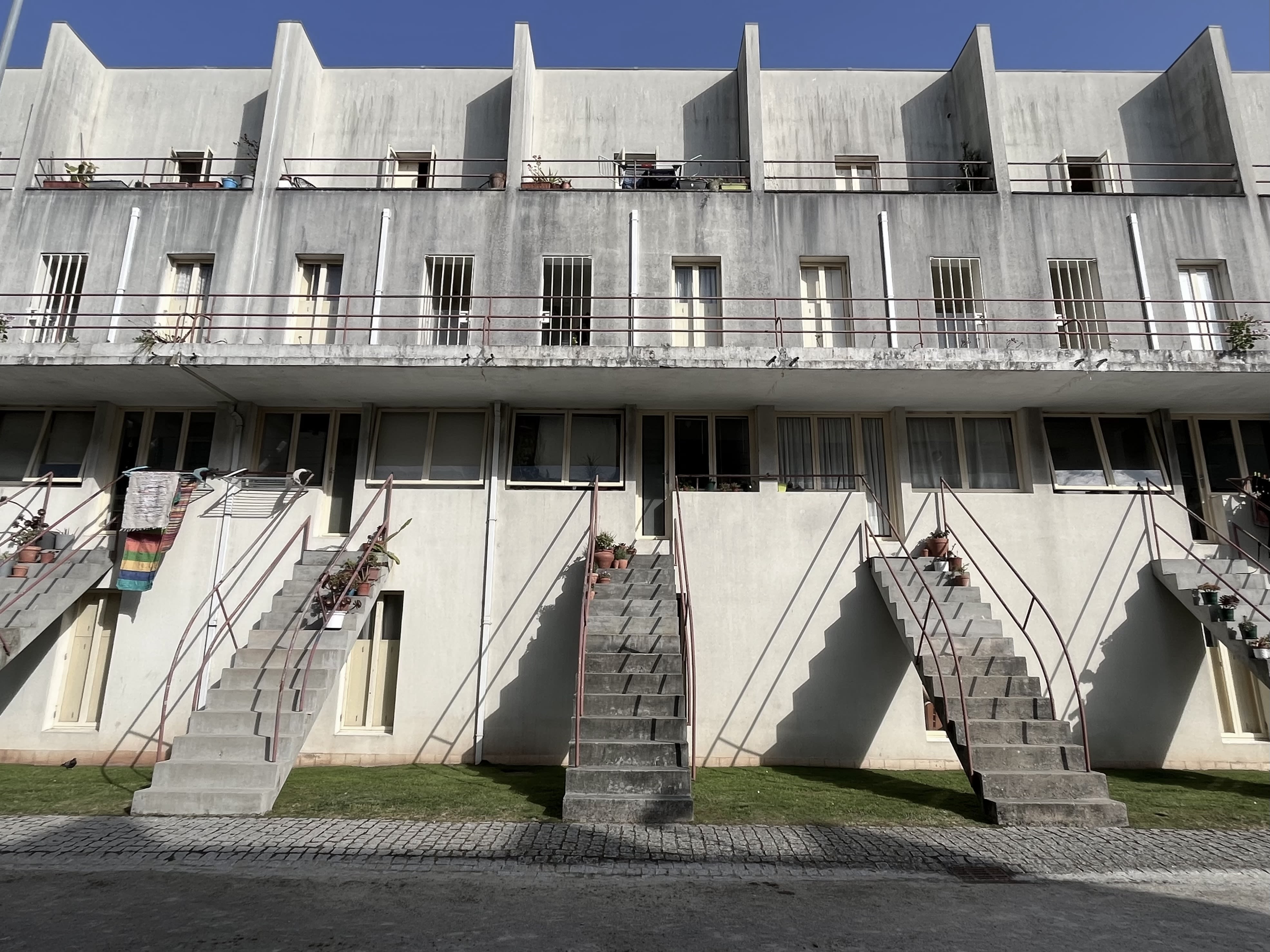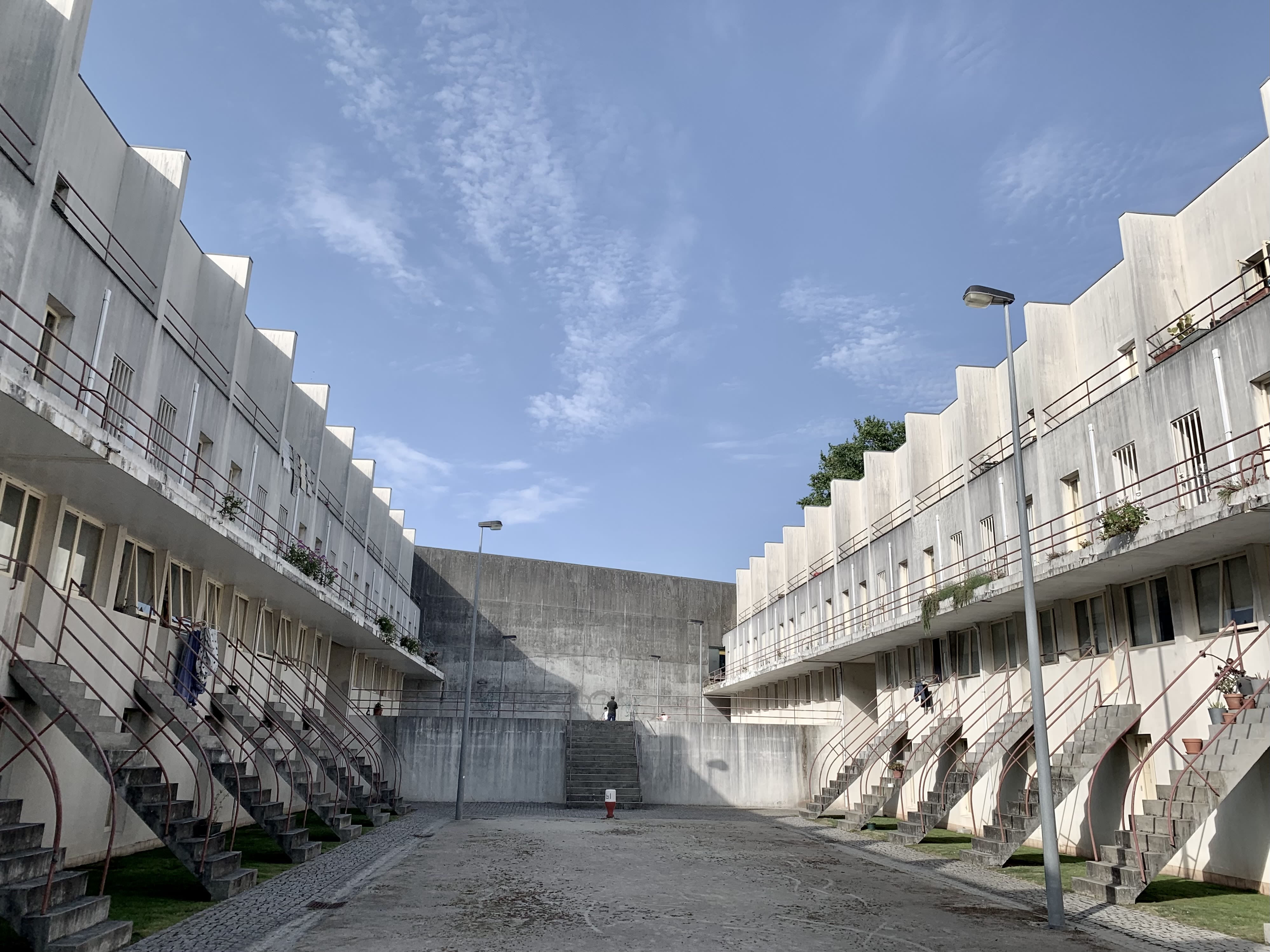 Dans les rues du quartier de Bouça, l’empreinte de l’architecte continue. Tous les habitant.es le connaissent. Au cœur de ces logements sociaux, se trouve une cour en béton. Celle-ci permet le partage d'activités entre voisin.es. Par cette construction, Siza souhaite avant tout créer du lien.