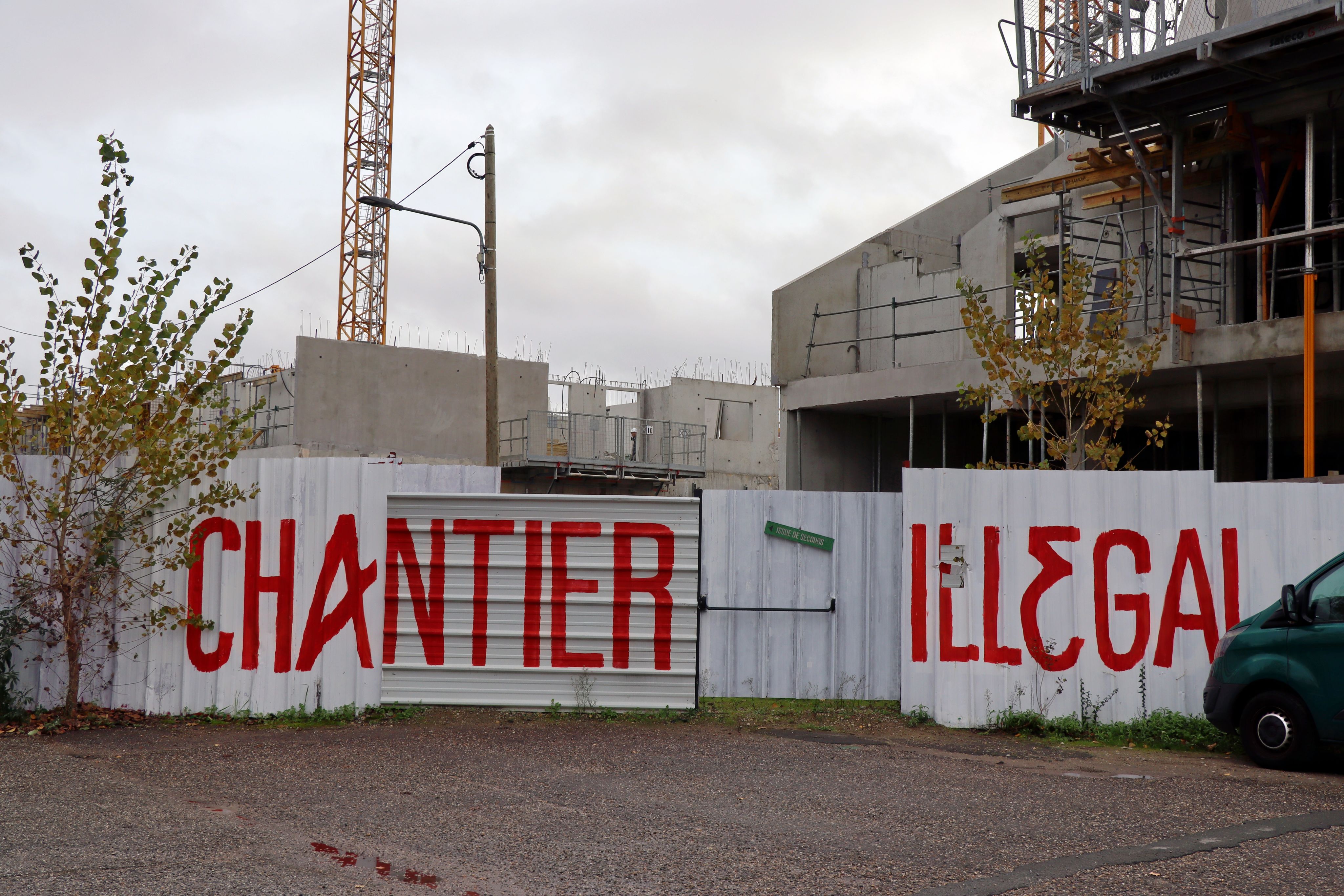Inscription sur les barrières entourant le chantier de la ZAC Bastide-Niel. © Pierre Cazemajor