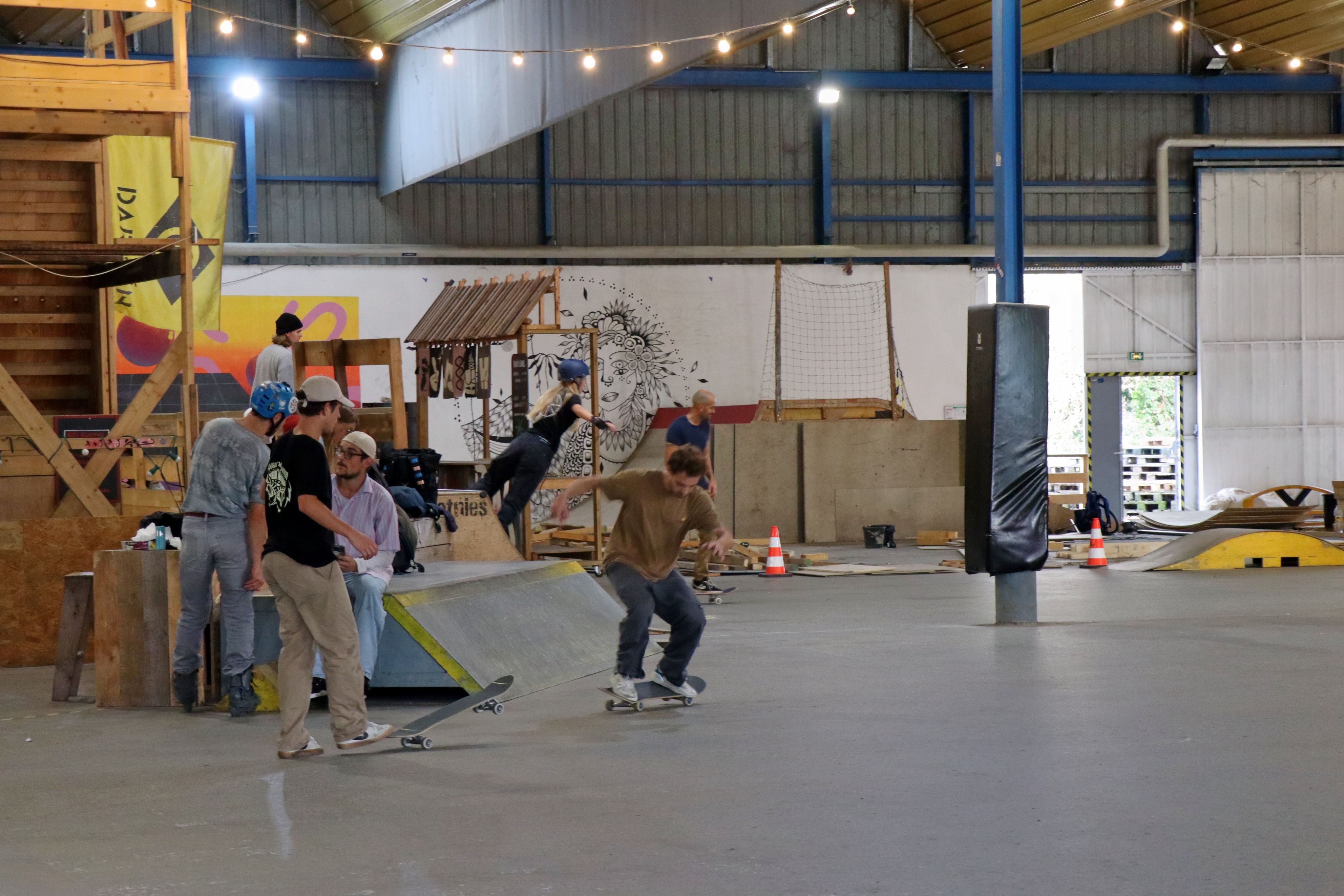 Si de telles initiatives ne permettent qu’un échange à la marge entre les différents milieux, il n’est pas rare de croiser des gens qui, venus pour une activité précise, restent pour une autre. Ainsi, Galy Mathilde, habituée du skatepark qui s’occupe désormais de la signalétique à Darwin. Ou Joolz, membre depuis dix ans de l’équipe de roller derby, qui a installé en septembre 2023 sa boutique de matériel de roller derby et quad entre le skatepark et le hangar où s'entraînent ses coéquipières.