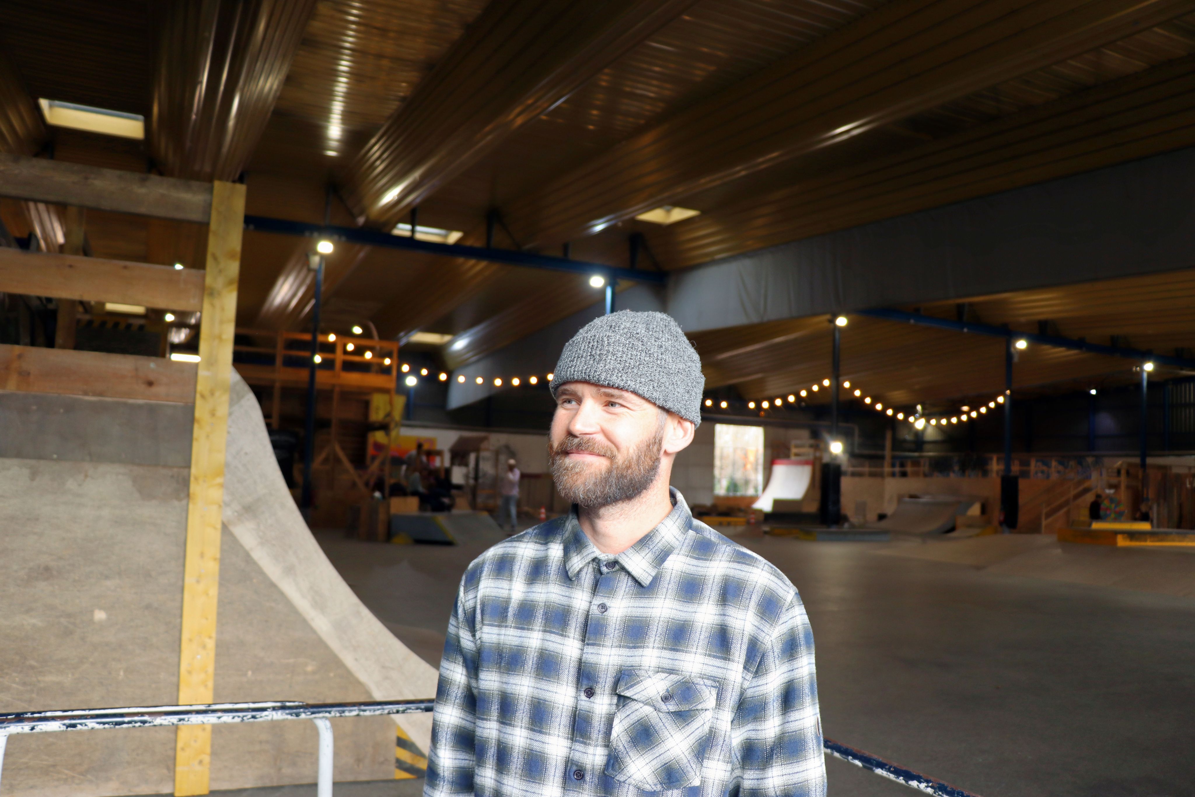 Tanguy Le Marec, coordinateur de la vie associative à Darwin et manager du Hangar, devant le skatepark. © Pierre Cazemajor