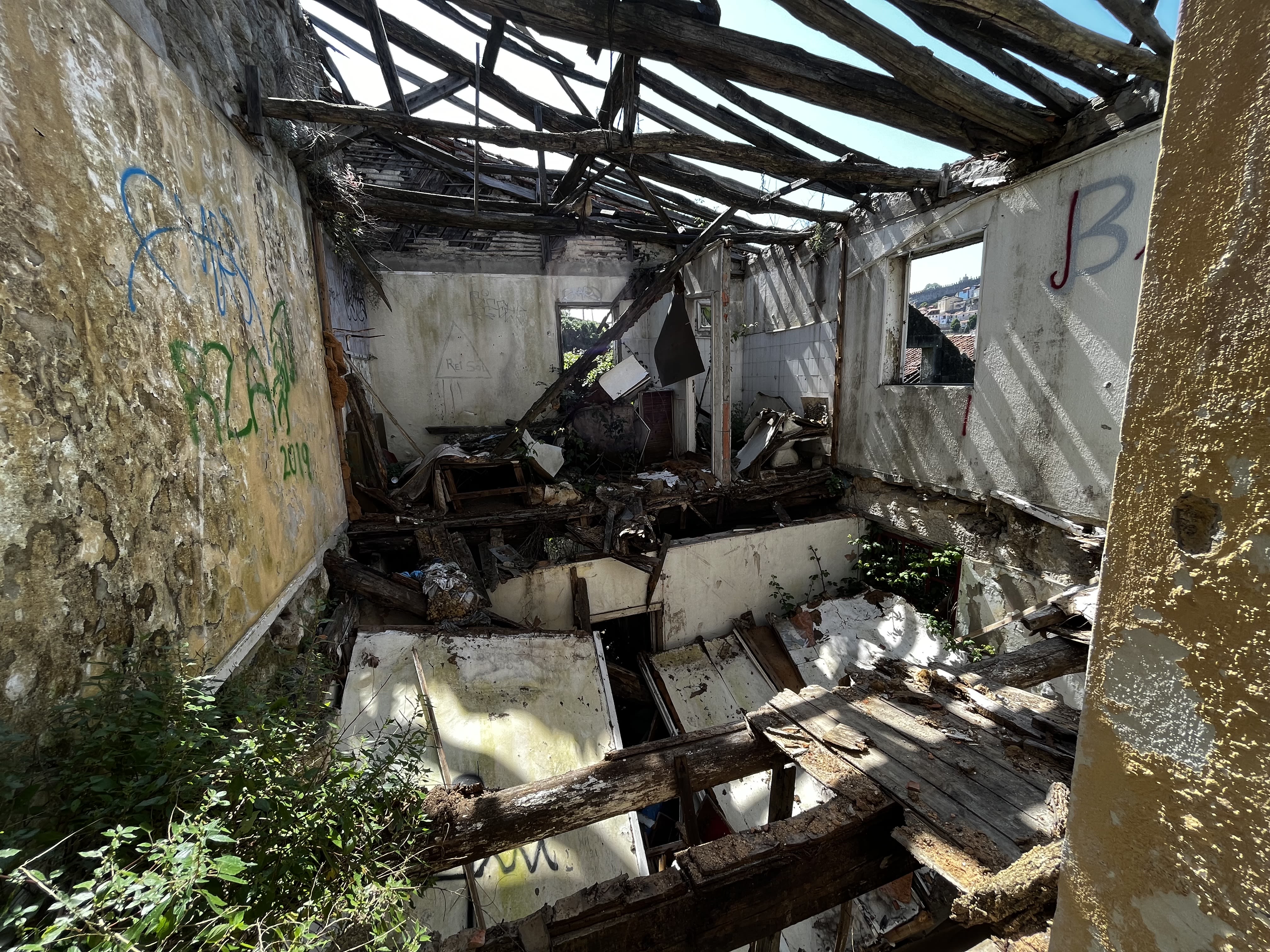 À quelques pas de là, en longeant la rive droite du Douro, une dizaine de maisons au toit effondré se succèdent. Certains badauds passent sans vraiment s’attarder, d’autres s’arrêtent et prennent le temps de les observer. Les plus curieux·ses s’aventurent au milieu des débris.