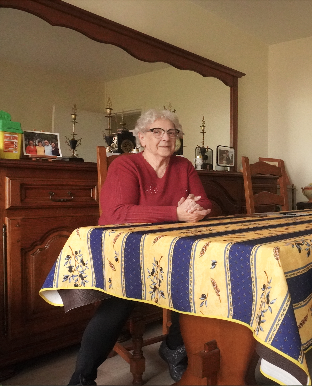 Dans la salle à manger, où Yvette conduit son invitée, les aiguilles de l'horloge murale camouflent le silence ambiant. De grandes baies vitrées, partiellement couvertes par les fameux rideaux en dentelle blanche, éclairent naturellement la pièce au parfum des produits ménagers. Un grand sourire se dessine sur le visage de la sénior, aujourd’hui il y a du monde chez elle.
