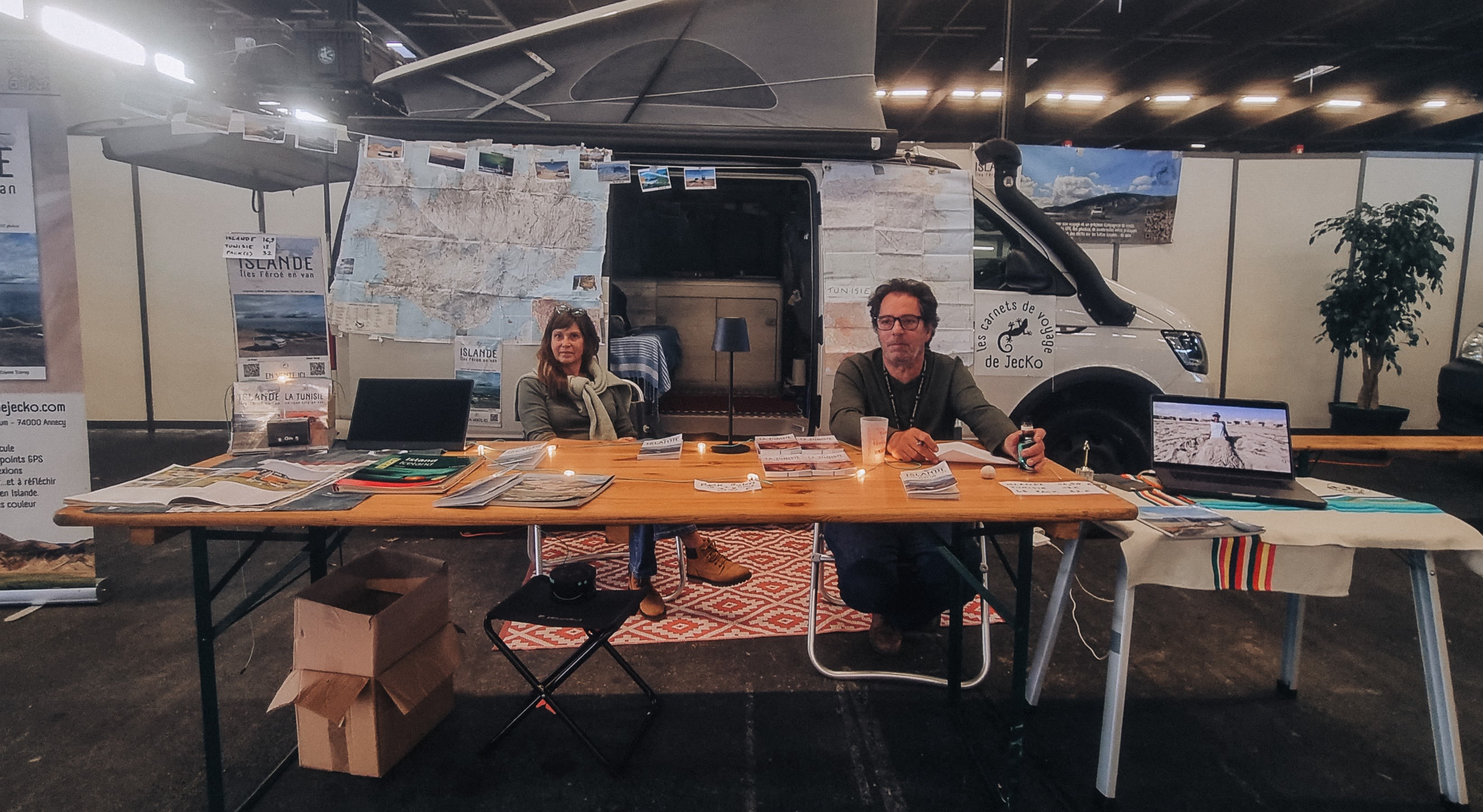 Ils vous racontent leur traversée des îles Féroé. Ou bien leur périple de trois mois en Tunisie. Eux, ne vous vendent rien à part leur histoire. Et pour les trouver, il faut aussi aller là où on peut difficilement se rendre : se frayer un passage entre les curieux immobiles, jouer des coudes, résister au charme d’un frigo à compression et contourner l’espace restauration. Leur stand trône tout au fond de l’exposition.